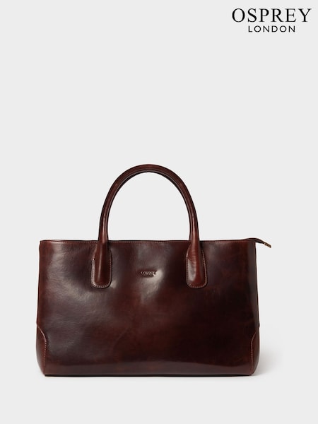 Osprey London Brown Chocolate The Large Clayton Leather Satchel Bag