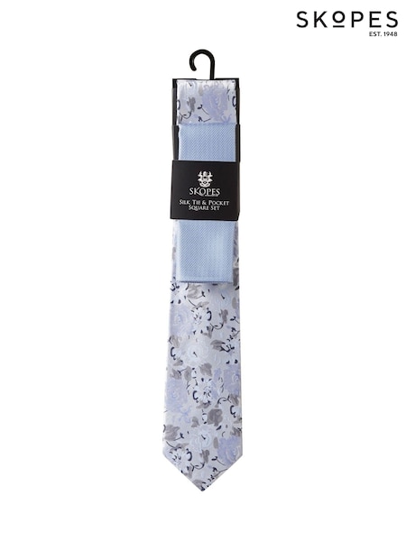 Skopes Blue Floral Silk Tie And Pocket Square Set