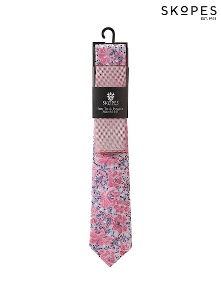 Skopes Pink Floral Silk Tie And Pocket Square Set
