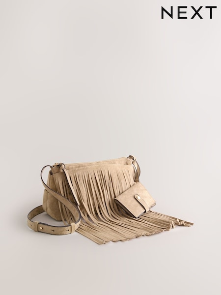 Stone Suedette Fringe Cross-Body Bag