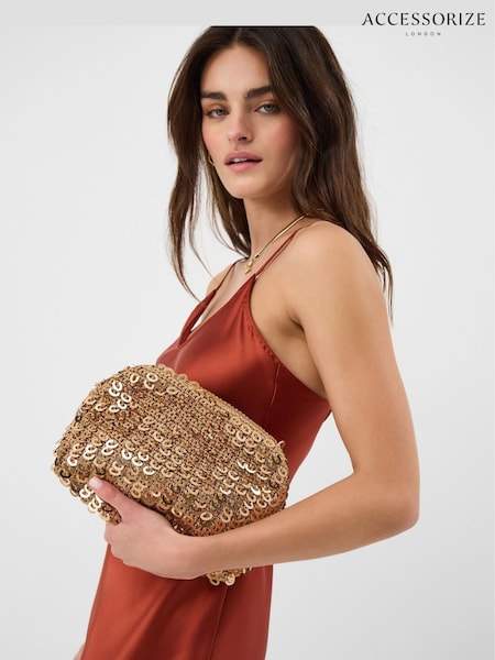 Accessorize Gold Sequin Woven Clutch Bag