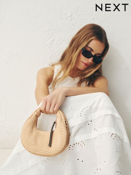 Natural Raffia Effect Mini Hand Held Bag