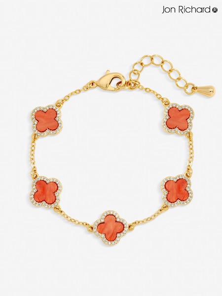 Jon Richard Gold Tone Mother of Pearl and Crystal Clover Bracelet