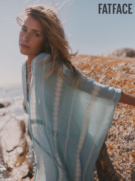 FatFace Blue Embroidered Kimono