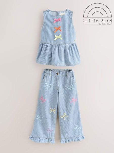 Little Bird by Jools Oliver Rainbow Embroidery Pinstripe Denim Top& Trouser Set