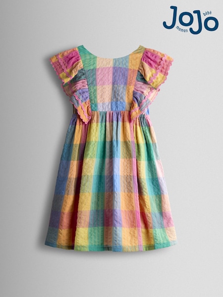 JoJo Maman Bébé Pink Multi Gingham V back Frill Dress