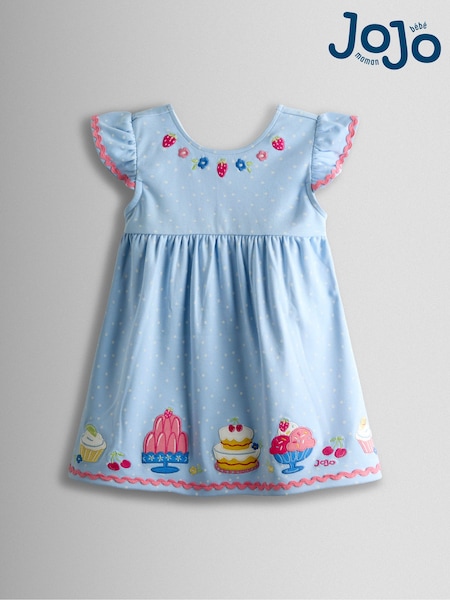 JoJo Maman Bébé Light Blue Cake Appliqué Flutter Sleeve Dress
