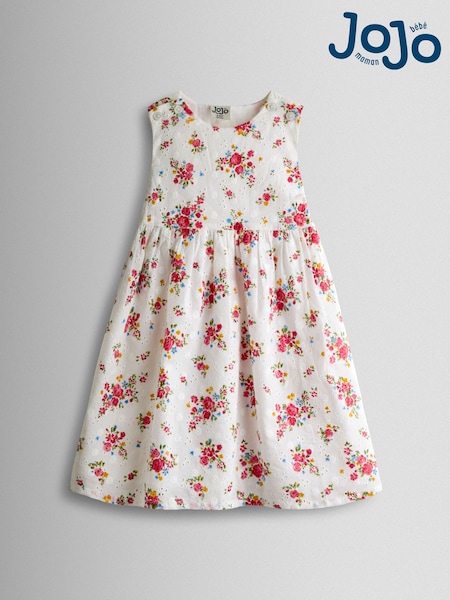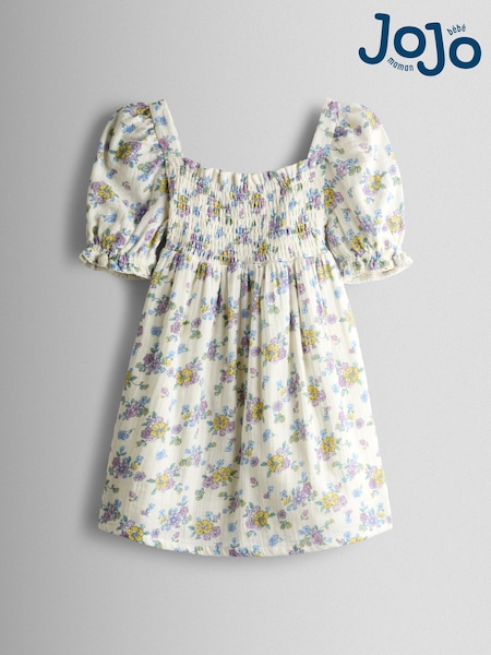 JoJo Maman Bébé Natural Floral Cheesecloth Smocked Bodice Dress