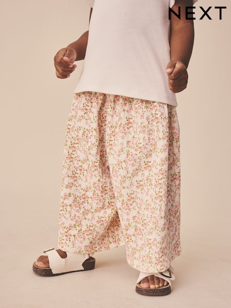 Ecru White Ditsy Floral Wide Leg Trousers (3mths-7yrs)