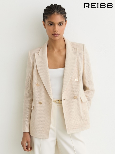 Reiss Cream Fiore Open-Weave Double-Breasted Blazer