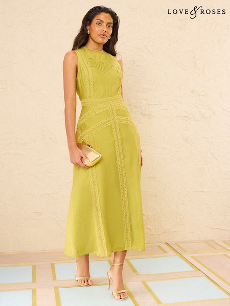 Love & Roses Lime Green Lace Drop Waist Sleeveless Midi Dress