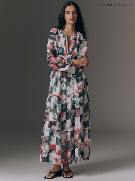Anthropologie Blue The Somerset Maxi Dress: Long-Sleeve Chiffon Edition