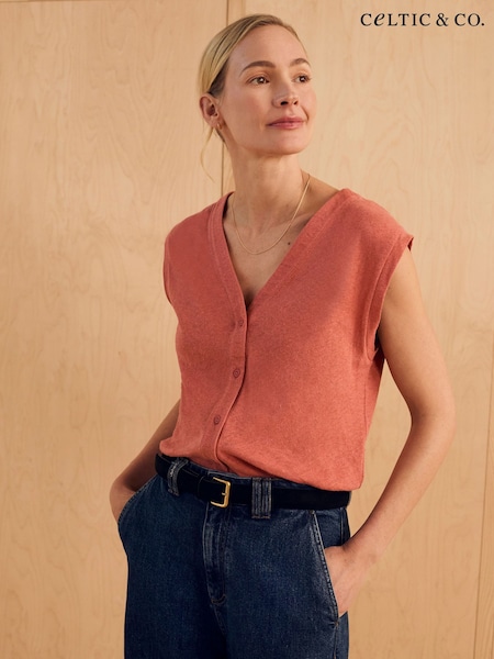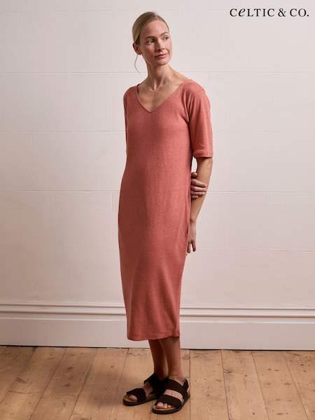 Celtic & Co. Pink Linen / Cotton V-Neck Midi Dress