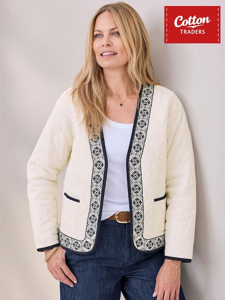 Cotton Traders Cream Embroidered Quilted Jacket
