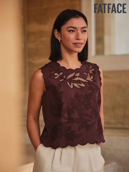 FatFace Meg Chocolate Brown Cutwork Shell Top