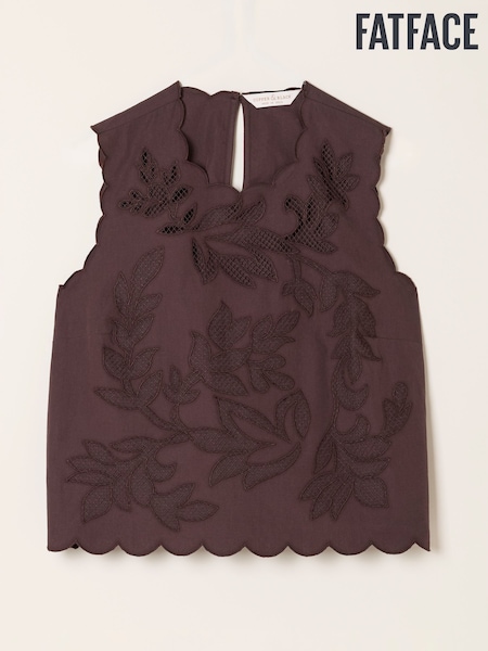 FatFace Meg Chocolate Brown Petite Cutwork Shell Top