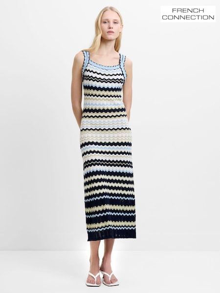 French Connection Blue Arywoode Denim Zip Throigh Midi Dress