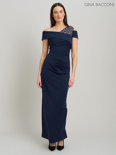 Gina Bacconi Blue Mandie One Shoulder Lace Detail Maxi Dress