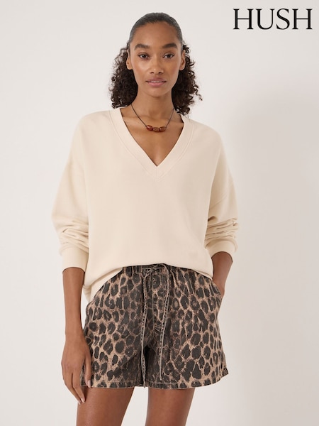 Hush Natural Cleo V-Neck Cotton Sweatshirt