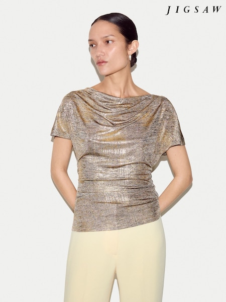 Jigsaw Gold Shimmer Gathered Jersey Top