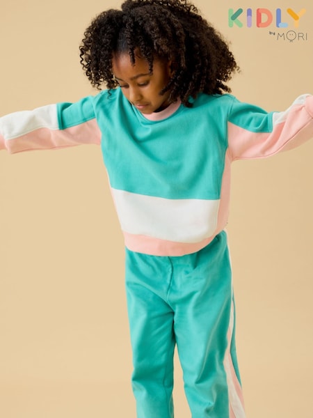 KIDLY by MORI Blue Colourblock Soft Cotton Oversized Sweatshirt