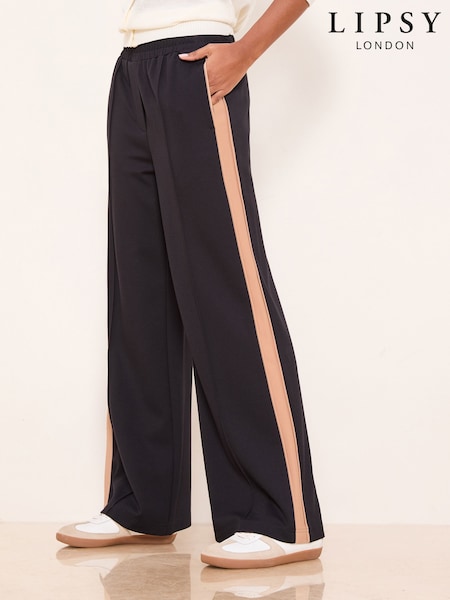 Lipsy Black Beige Premium Side Stripe Jersey Joggers