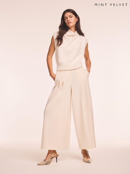 Mint Velvet Cream Pleat Detail Crop Wide Trousers