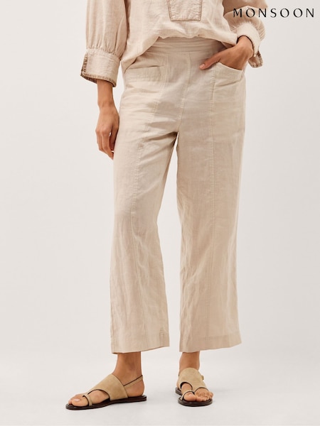 Monsoon Natural Lucy Short Straight Leg Linen Trousers