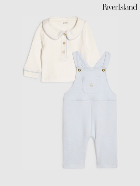 River Island Blue Long Sleeve Polo Shirt & Dungarees Set