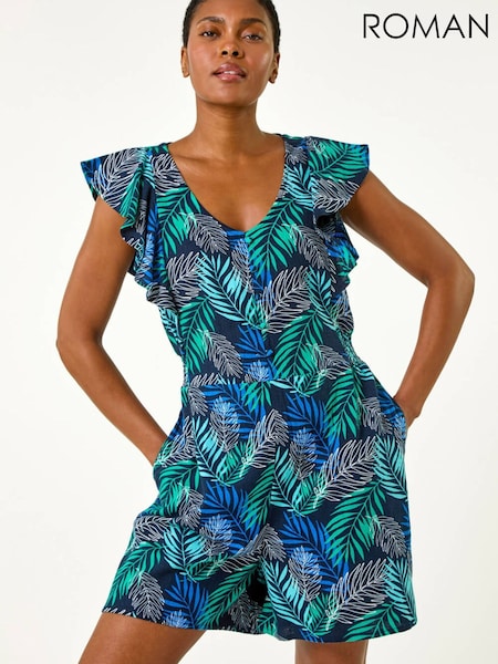 Roman Blue Tropical Leaf Print Playsuit