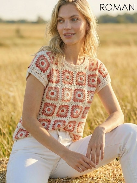 Roman Orange Crochet Knit T-Shirt