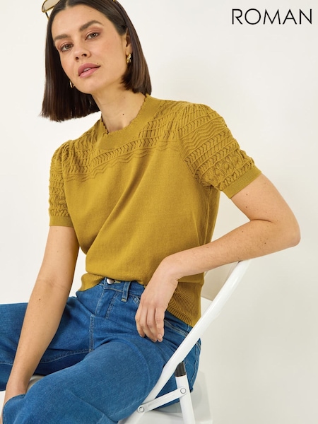 Roman Green Pointelle Knit T-Shirt