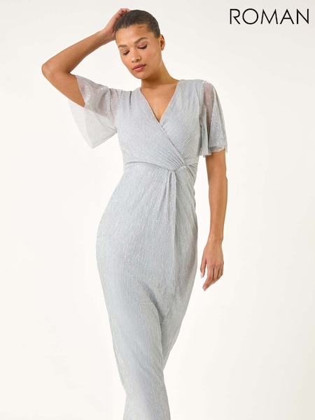 Roman Metallic Metallic Plisse Bodycon Maxi Dress