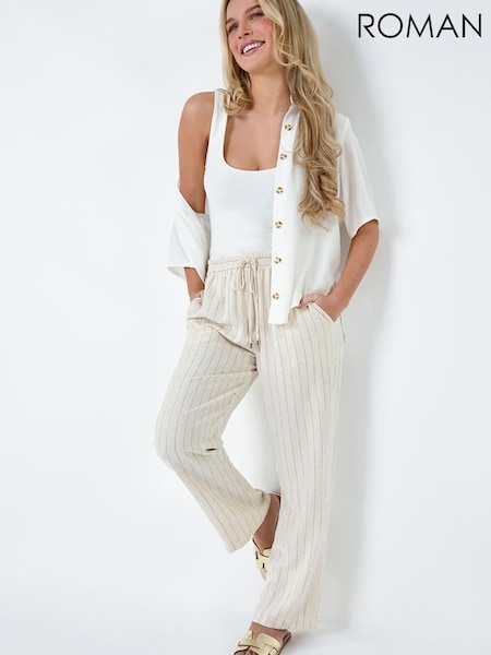 Roman Natural Petite Linen Blend Stripe Trousers