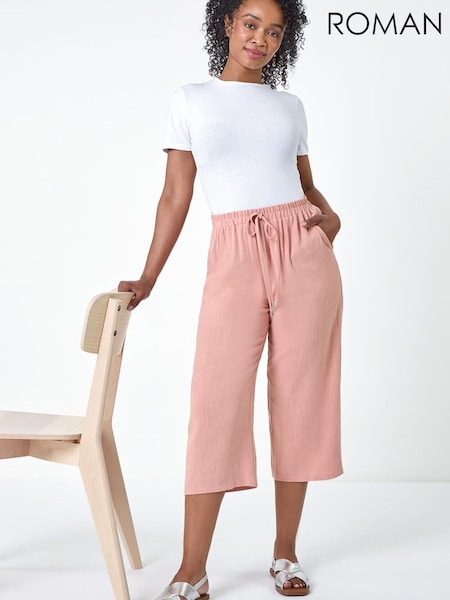 Roman Baby Pink Linen Mix Wide Cropped Trousers