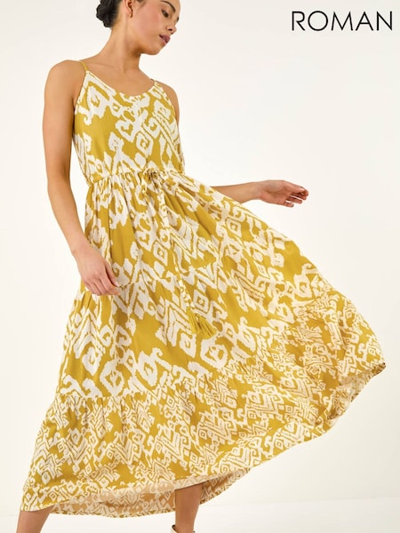 Roman Yellow Petite Abstract Strappy Dress