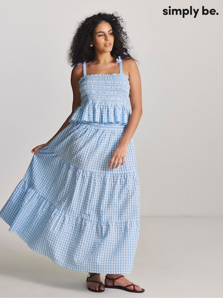 Simply Be Blue Gingham Beach Top and Skirt Co-ord Set