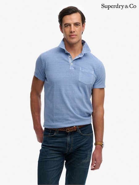 Superdry Blue Classic Cotton Linen Polo Shirt