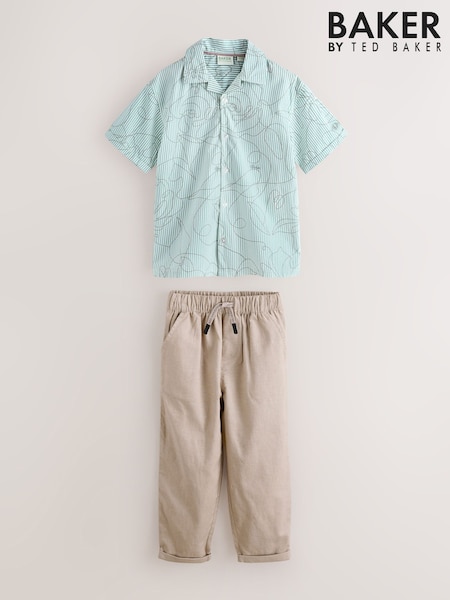 Baker by Ted Baker Stone All Over Print Linen Blend Shirt and Trousers Set