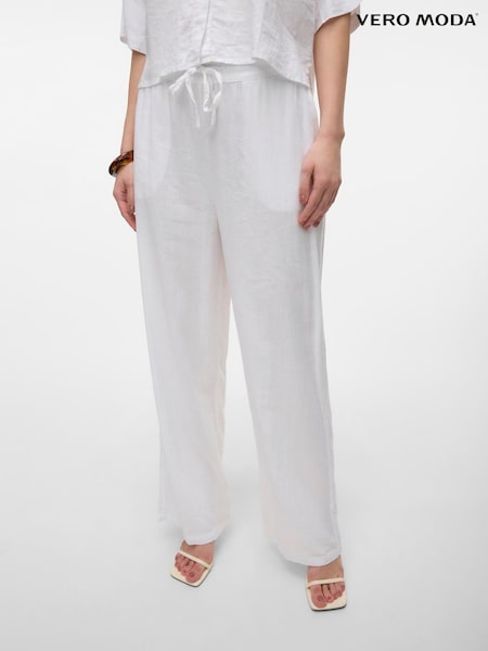 VERO MODA White High Waisted Linen Mix Wide Leg Trousers