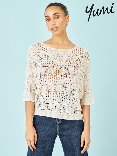 Yumi Natural Relaxed Fit Pointelle Jumper