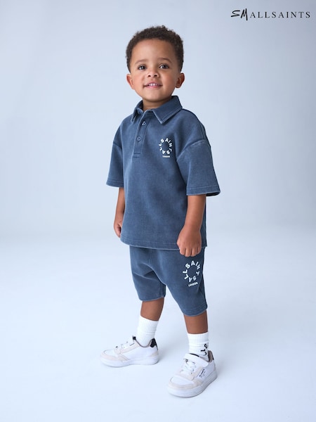 smALLSAINTS Blue Tierra Waffle Polo Shirt and Shorts Set