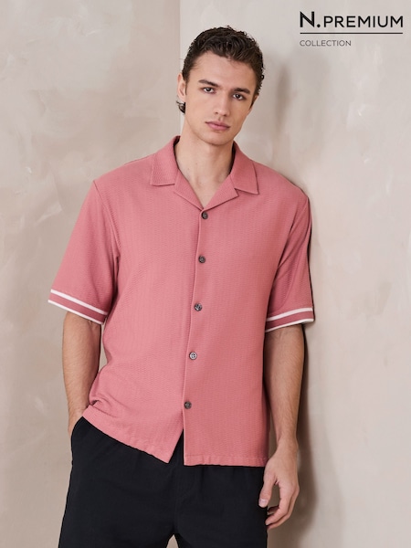Coral Pink Regular Fit Jersey Textured Short Sleeve Tipped Shirt