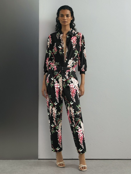 Atelier Cotton Floral-Print Tapered Black Trousers