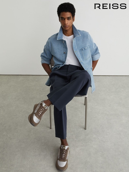 Reiss Soft Grey / Brown Ian Suede Lace-Up Running Trainers