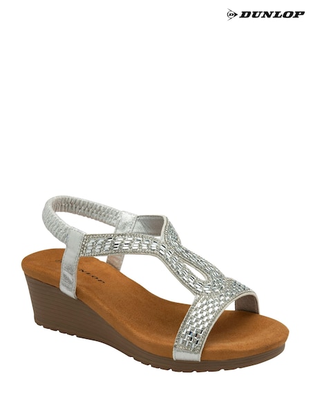 Dunlop Silver Tear Drop Wedge Elasticated Sandals