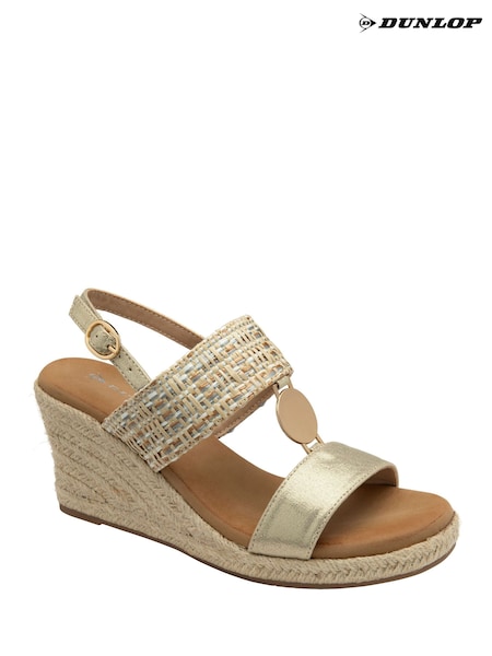 Dunlop Gold Wedge Espadrille T Bar Sandals
