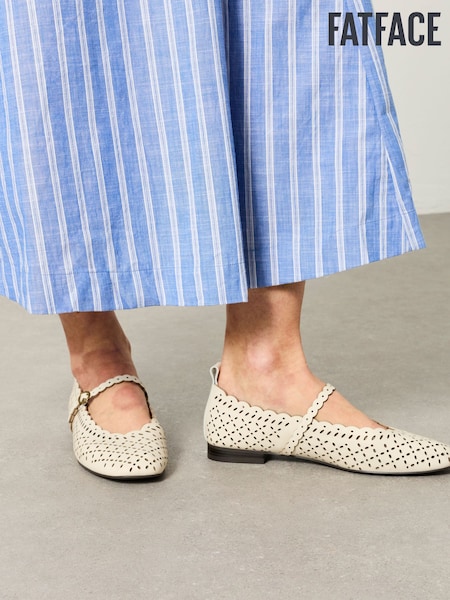 FatFace Ivory Leather Lasercut Ballerina Flat