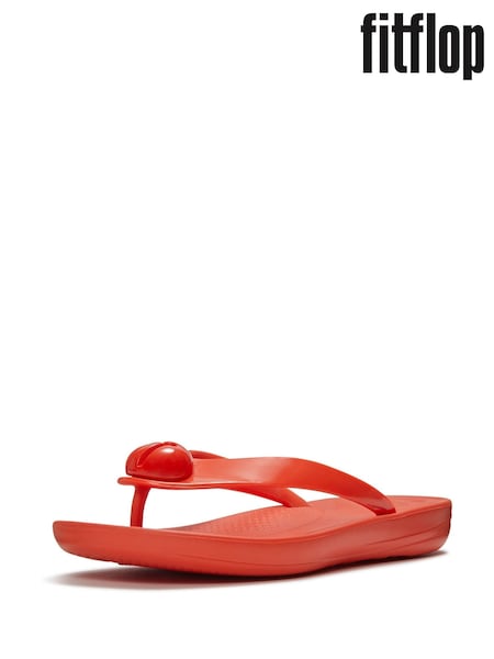 FitFlop Red iQushion Glossy Button Flip Flop Sandals