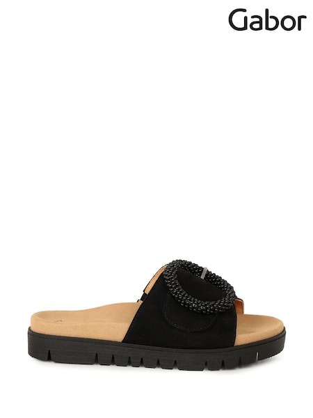 Gabor Black Wide Fit Ashlene Leather Ballerina Style Shoes